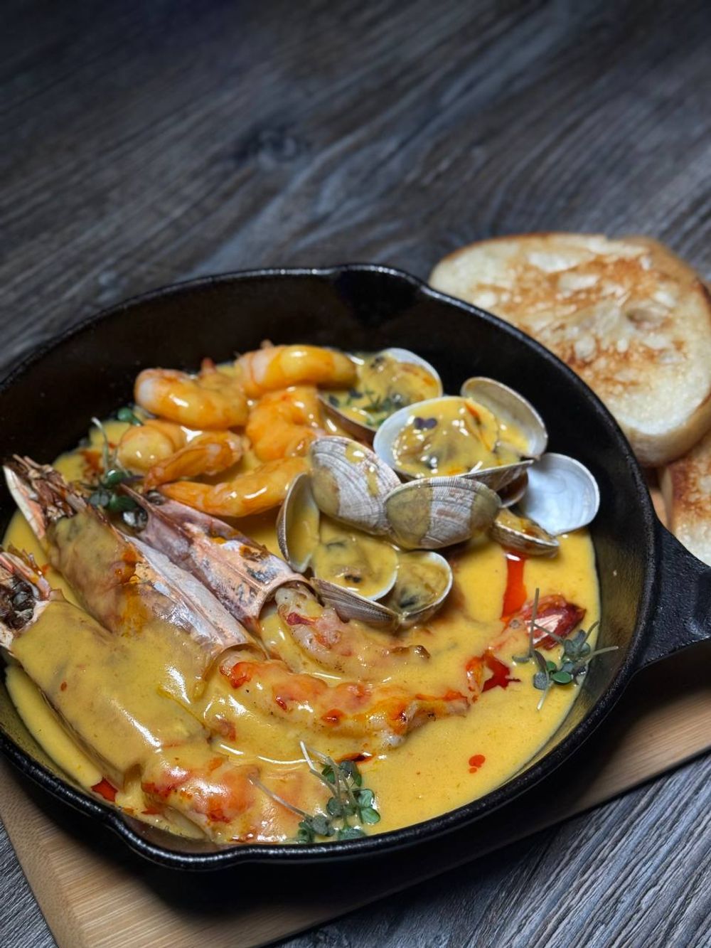 Блюдо, в котором морепродукты (креветки, кальмары, мидии, рапаны и другие) обжариваются на сковороде, а затем дополняются соусом с характерными для тайской кухни вкусами — кисло-сладкими, солёными или острыми