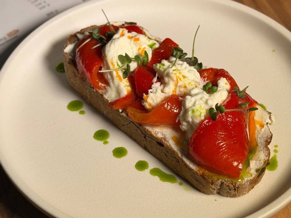 Итальянская закуска, которая сочетает хрустящий хлеб, нежный сыр страчателла и пикантный маринованный перец
