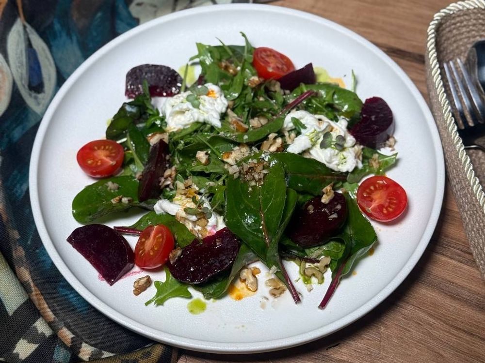 Салат с запеченной свеклой и страчателлой