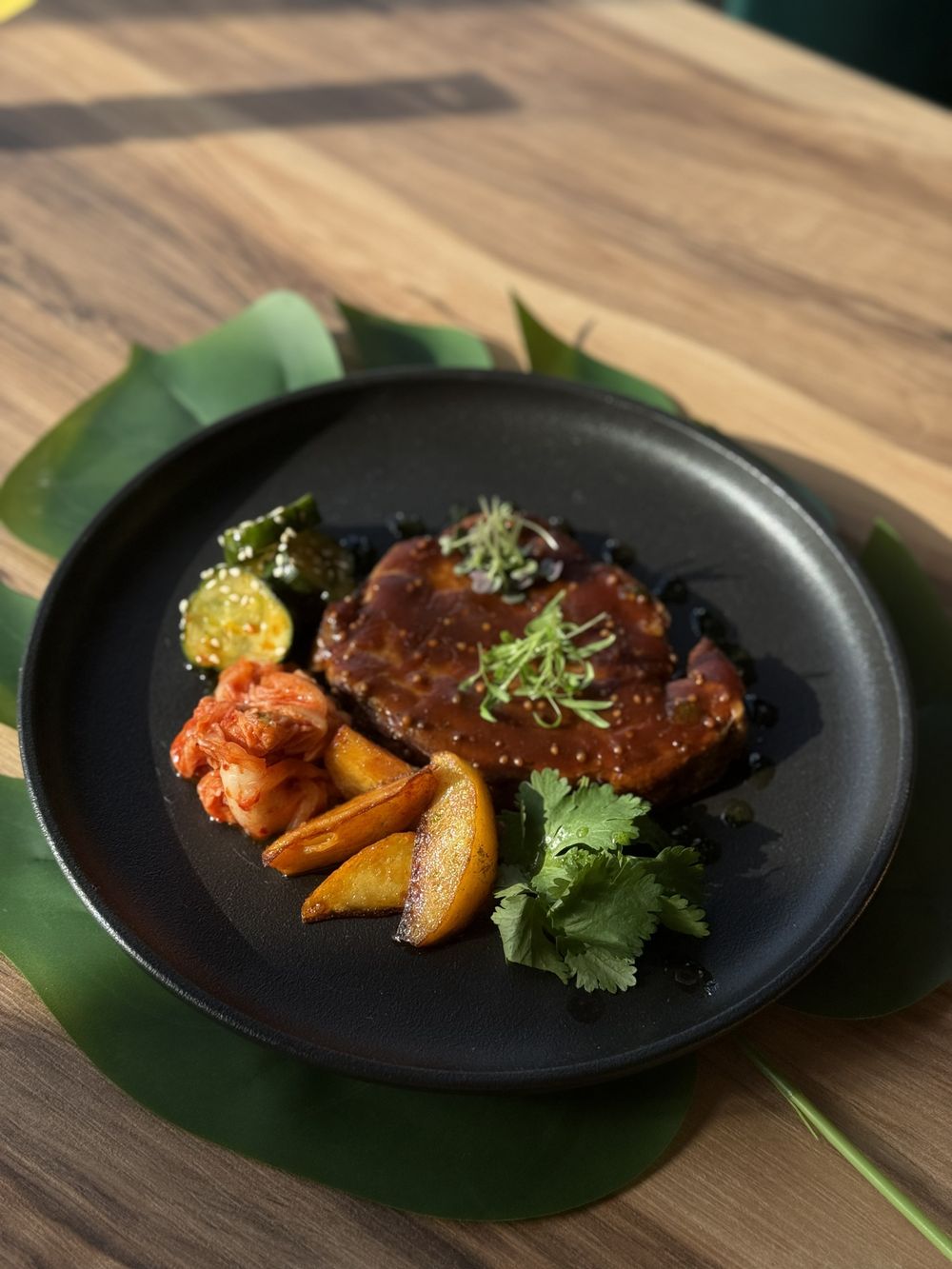 Блюдо из свиной шейки, приготовленное с использованием методов барбекю