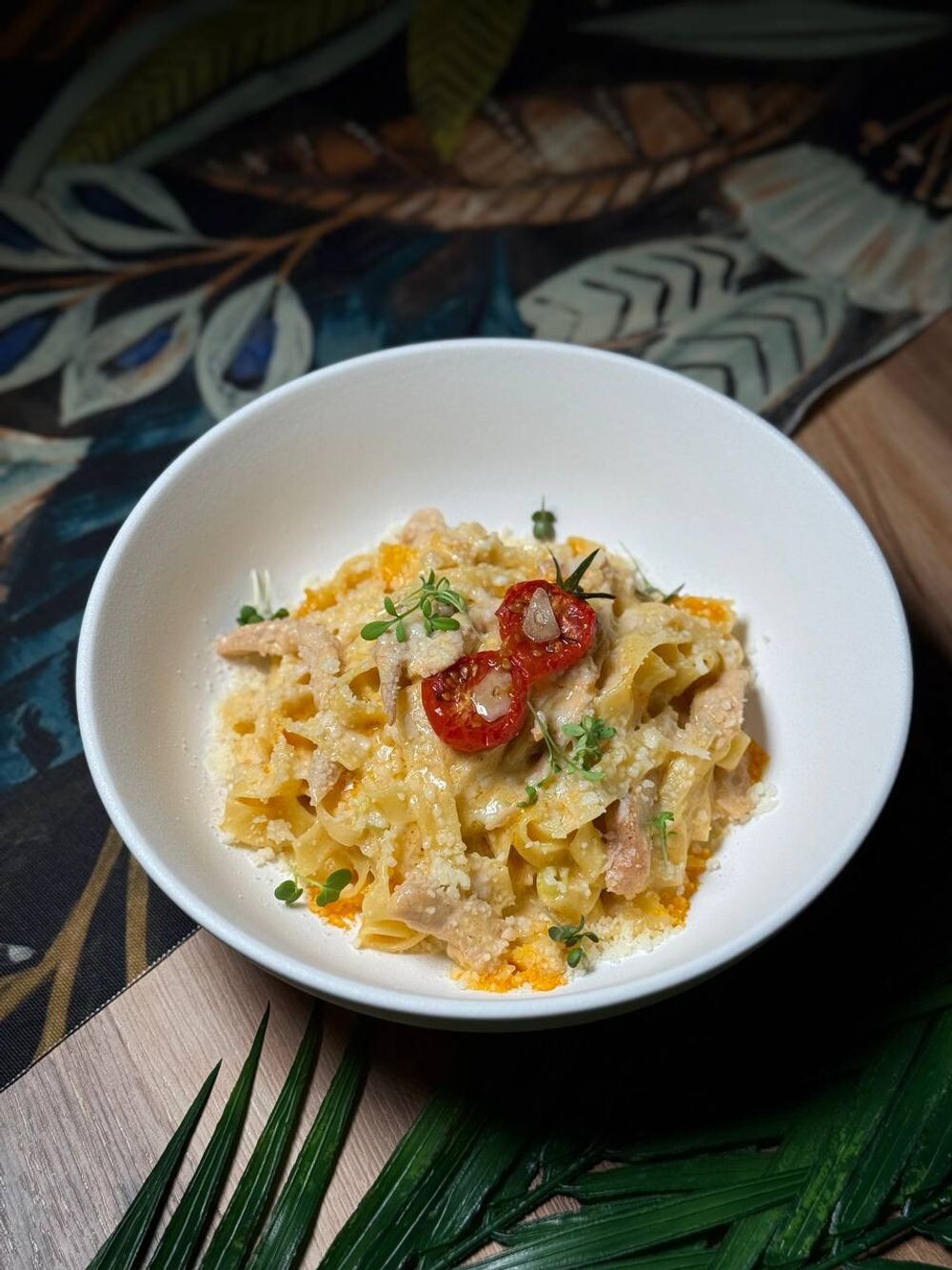 Блюдо итальянской кухни, где классическая паста тальятелле сочетается с индейкой