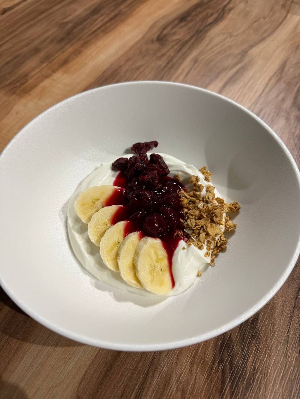 Десерт, в котором сочетаются кисловатые ягоды и сладость банана