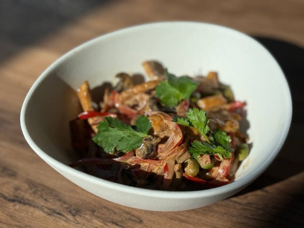 Лапша по-сеульски с курицей и арахисом